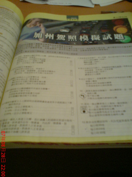 <緊急補充> DMV駕照筆試考古題中文版最近有新增考題,2007年版華人工商考古題並沒有收羅局部的考題,要考駕照筆試的人建議多找幾個版本。
